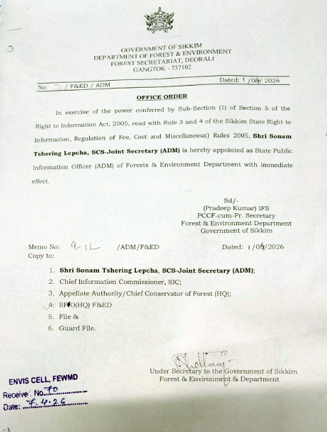 First Appellate Authority, Mobile No. 9434127178, email: pccf-fewd@sikkim.gov.in